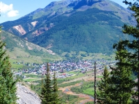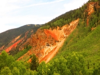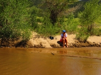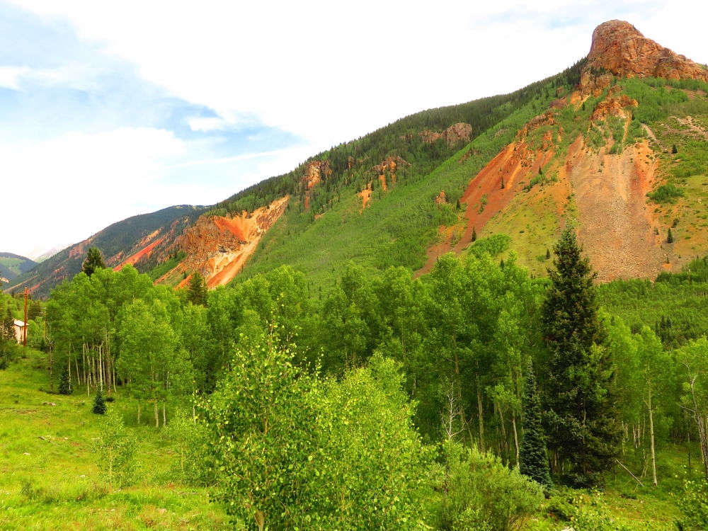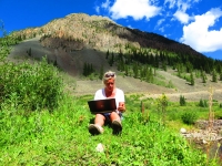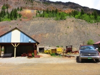 La mine se trouve à quelques miles à l’est de Silverton et en allant nous avons repéré un petit chemin en contre bas qui se prête très bien pour y passer la nuit. Au retour de la mine on explore les lieux et effectivement nous y serons très bien ce soir. En attendant on s’y gare pour qu’Éric fasse une sieste pendant que je me mets à écrire au bord de la rivière. Pour une fous ce ne sont pas les moustiques