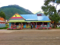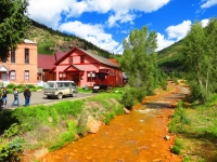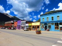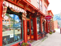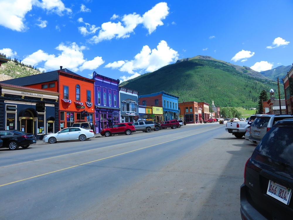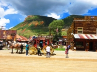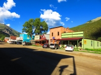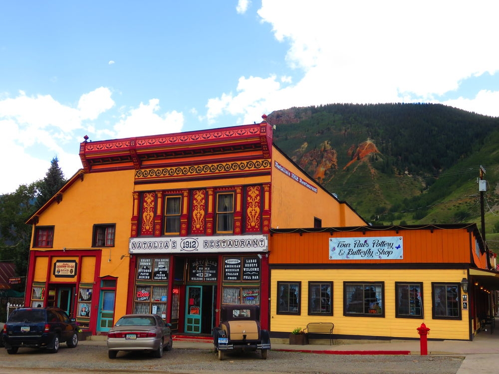 On passe Durango sans s’y arrêter, nous serons obligés d’y repasser et on le visitera en ce moment-là. Après un autre col qui monte à plus de 3200m on arrive à Silverton, il est à peine dix heures et les rues en terre battues sont presque vides. Mais qu’est-ce que c’est joli. On a hâte de s’y promener et on gare Fleurette dans une rue, il y a de la place partout. Silverton c’est une ancienne ville de mineur à 3000m d’altitude entourée de montagnes. Nos deux appareils photo mitraillent les façades colorées.