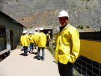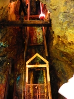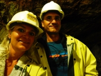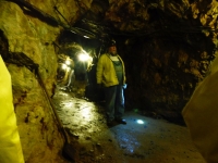 Eric toujours pas remis de son échec à la mine l’autre jour aimerait prendre sa revanche. Ici aussi on peut visiter une mine, la descente se fait en train ce sera plus facile. On y va. De nouveau nous sommes équipés d’un casque et veste. On s’assoit dans le train d’origine qui transportait à l’époque les mineurs. C’est assez serré. Je regarde Eric discrètement, ça a l’air d’aller. La descente dure 4 minutes, à partir de là la visite se fait à pied. C’est intéressant, et on se rend bien compte que la vie d’un mineur est loin d’être facile. Notre guide, lui-même un ancien mineur nous explique bien la vie en bas et nous montre les outils utilisés. On croise également le maudit ascenseur qui nous a fait faire demi-tour il y a quelques jours.