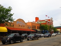 On arrive donc de très bonne heure et on tombe de suite sur une immense parking vide. 7$ pour la journée et 15$ pour la nuit…. Si on avait su ! On a largement le temps de déjeuner et de nous préparer. Vers 9h on ne voit toujours personne et on se souvient que c’est un jour férié aujourd’hui, labor day. (La fête du travail). Peut-être ça veut dire que tout est fermé ? À 10h nous sommes toujours seuls sur l’immense parking. Tant-pis on va se promener, la chaleur est déjà au rendez-vous. On se rend compte que nous sommes garés sur le parking de Billy Bobs, c’est une énorme boite de nuit, salle de jeu, music hall. Il peut recevoir 6000 personnes. A cette heure –ci il n’y pas un chat, on reviendra plus tard. Les rues sont également désertées, on commence à se poser des questions. Ce qui n’empêche pas qu’on aime beaucoup ce quartier Western.