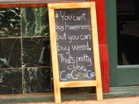 Quand on passe devant un café on s’arrête pour y boire un verre. Je prends un Italian Soda, même après l’avoir bu je ne sais toujours pas ce que c’est. Eric prend une bière tequila, qui n’a finalement rien à voir avec une bière. Pas grave c’est bon quand même. Une chanteuse nous fait l’ambiance accompagné de sa guitare. Elle chante d’abord en Anglais pour finir en Français. Eric très content l’encourage de chanter encore en Français ce qu’elle fait avec plaisir. On la remercie avec un pourboire en partant et elle parle un peu avec Eric dans un Français plus que correct.