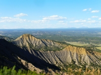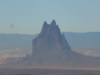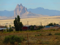 Prochain cible sur la carte est Santa Fé, Eric nous a préparé une route « touristique » pour aujourd’hui. Vers 9h on quitte Cortez direction Shiprock. Cette ville est connue pour son énorme rocher. En s’approchant on voit de loin des rochers, il y en a plusieurs. Ça nous rappelle Monument Valley. Finalement on ne passe même pas devant le rocher de shiprock mais on le voit de loin.