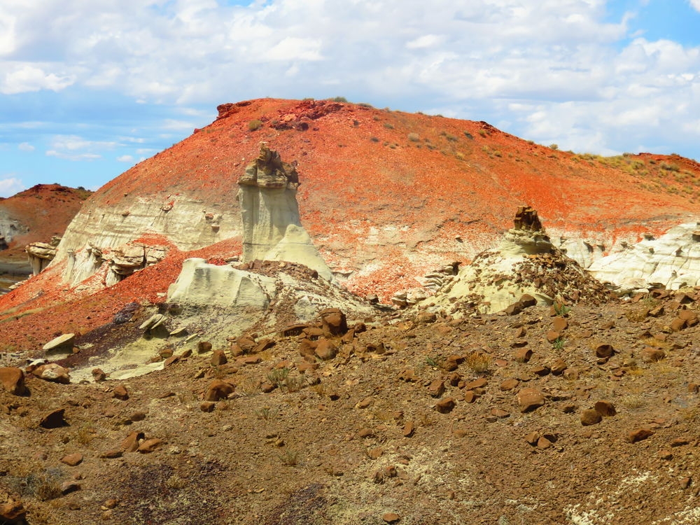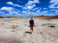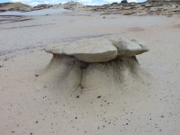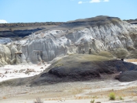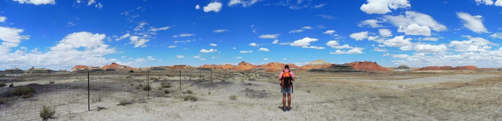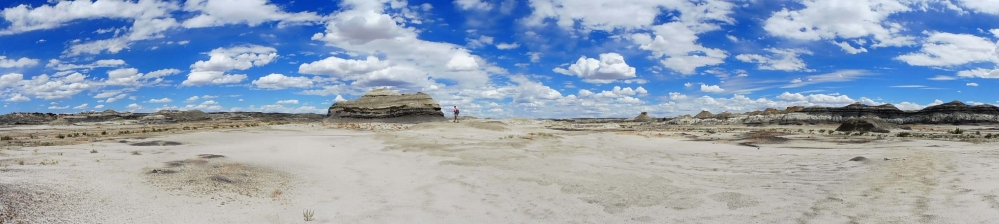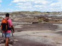 Nous sommes au pays Indien et ça se voit aux habitations et aux vendeurs ambulants au bord de la route. C’est un peu comme j’imagine le Mexique, c’est peut-être aussi parce que nous venons de rentrer dans l'état du New Mexico. Shiprock est juste un point de passage, la vraie destination d’aujourd’hui sont les Badlands Bisti. C’est une zone désertée avec des formations rocheuses spectaculaires qu’on peut découvrir à pied. Il n’y pas de sentier à nous de trouver notre chemin dans les 182km2 de terre sauvage.