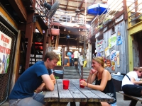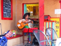 Dès qu’on sort du bus on a qu’une envie c’est de boire, un petit bar avec un chanteur fera affaire. En bonus il y a un brumisateur. Il y fait bon et le chanteur nous plait, à un point qu’on achète son CD pour $10.