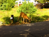 Une biche vient nous rendre visite, elle se balade tranquillement dans le camping, même le chien du voisin ne lui fait pas peur.