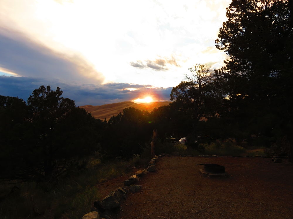 On retourne au camping avec Fleurette, il est encore assez tôt et on s’installe sur nos chaises longues avec un livre. Après l’effort la récompense. Eric tâte le terrain en me disant que ce sera bien de voir le coucher du soleil de là-haut. Je lui lance un regard noir. En regardant la carte des dunes qu’on a reçu à l’entrée du parc on se rend compte que notre dune n’était pas la plus haute, il y en a une autre un peu plus loin. Si seulement je l’avais su avant…. je n’aurais rien dit