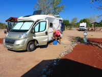 ) nous avons également cassé le bouchon pour le réservoir d’essence, il ne se ferme plus correctement. On s’arrête à un magasin voiture pour qu’Éric y en achète. Ça ne va pas être évident nous avons bien compris que les accessoires pour voitures Européennes ne sont pas facile à trouver. Je le vois sortir et rentrer avec le vendeur plusieurs fois pour essayer un bouchon. Finalement il ressort avec un bouchon universel, on ne pourra plus le fermer à clé tant-pis.