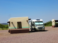 Alburquerque n’est pas une ville attirante et nous partons un petit peu vers le sud pour trouver un camping. Il y en a un au bord d’un lac a quelques miles. Ca fait longtemps que nous n’avons pas eu un camping aussi agréable et calme. Calme sauf pour le train qui passe et siffle toutes les heures