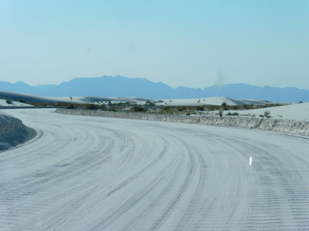 On se rapproche de White Sands encore une heure de route. White Sands National Monument est un désert de Sable Blanc. La ville White Sands et une base militaire de lancement de missiles. L’un ne se trouve pas loin de l’autre. D’ailleurs le parc est fermé le jour d’un lancement, ce qui me parait normal. Juste avant d’arriver au parc nous devons passer un point de contrôle ou ils demandent de montrer nos passeports.