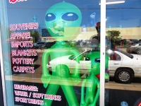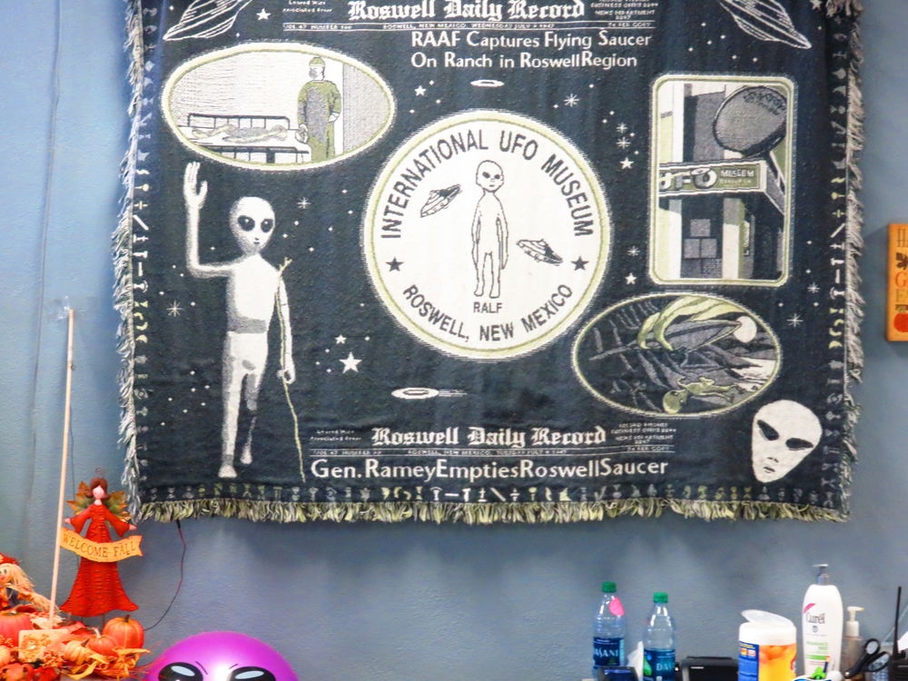 On s’arrête à Rosswell pour mettre le site à jour. Rosswell est connu pour avoir dirigé une enquête sur des extra-terrestres en 1947. Un OVNI était censé d’avoir atterri à 120 km de la ville. Même si la rumeur a été démenti par la NASA, beaucoup de gens y croient toujours et la ville en a profité pour mettre ce phénomène en avant. Les magasins sont tous orientés sur les extra-terrestres. C’est trop gros à mon gout, mais certaines publicités sont quand même rigolotes. On n’y reste pas beaucoup de temps. Ce n’est pas très intéressant et en plus il fait une chaleur à tomber.