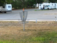 Un peu plus tard dans la soirée, une voiture s arrête devant nous. Un monsieur en sort et nous donne deux frisbees. Plus tôt on avait vu un groupe de personnes jouer avec ces frisbees sur le terrain a côté. Il nous explique que ce jeu s appelle disc golf. C est basé sur le même principe que du golf standard. avec 18 trous. Il nous a vu regarder et nous offre les deux disques pour que nous puissions jouer. C est vraiment super sympa de sa part. On regarde sur internet et effectivement ce jeu existe aussi en Europe.