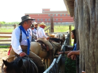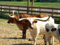Pour en savoir un peu plus on se renseigne au vistor center. Selon la dame tout est ouvert aujourd’hui et il est tout à fait normal qu’il n’y a pas encore grand monde. Nous voilà rassuré. On repart avec un plan, premier rdv à 11h30 pour voir le bétail défiler dans la rue. En attendant on fait le tour de quartier, on visite les longhorn cows, les mêmes qui vont devoir parader devant nous tout à l’heure. Elles se battent pour avoir un peu d’ombre, les pauvres. On les comprend, on marche dans les rues en fonction des endroits ombragés. Impossible de rester au soleil longtemps.