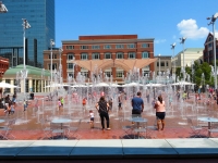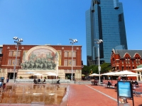 Down Town se trouve à 5 min , encore on se promène dans les rues quasi vides. Ou sont les gens ?? Est-ce qu’il fait trop chaud, il faut dire qu’on fond sur place. On arrive à une grande place ou les enfants s’amusent dans les jets d’eau. Oh comme j’aimerais pouvoir faire pareil. On songe à s’accaparer d’un des enfants pour faire semblant d’être ses parents mais redoutons la réaction des vrais parents