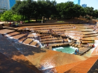 On continue notre ballade et passe devant le JFK mémorial pour finir dans water gardens. Un endroit avec des bassins d’eau avec des fontaines et des murs d’eau. On peut enfin mettre des pieds au frais et il fait meilleur ici. On reste un petit moment, assez longtemps pour qu’Eric fasse une sieste