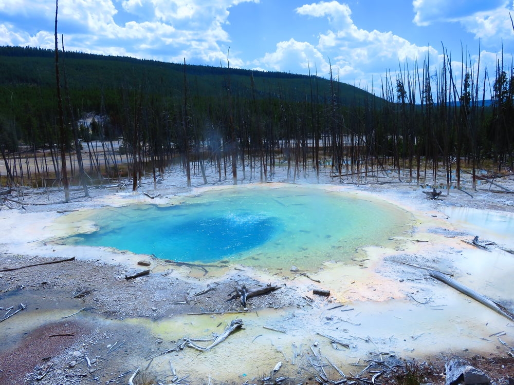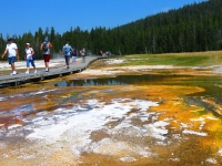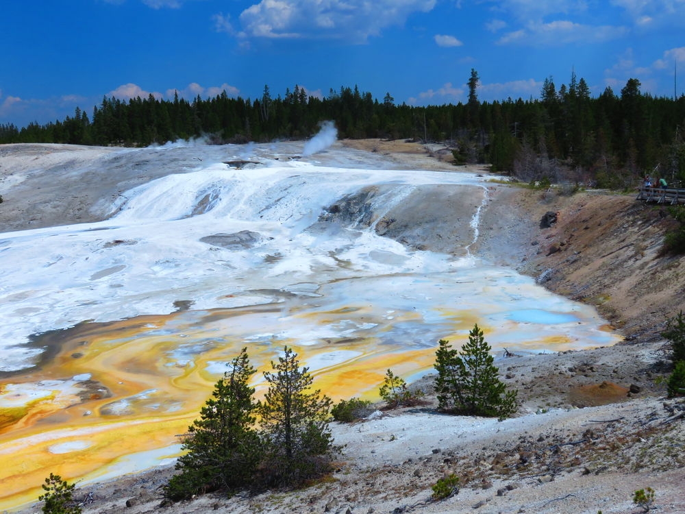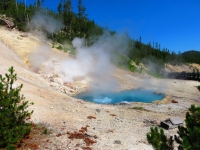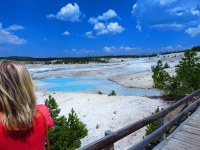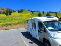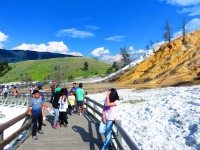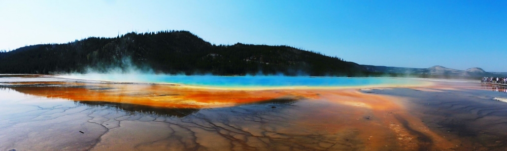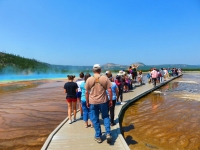 L’étendue du Parc National de Yellow Stone est aussi vaste de celle de la Corse. On peut y rentrer par 5 routes différentes. L’entrée est payante $30 par voiture. A l’intérieur la route principale fait un 8 de 230 km. Nous avons compté environ 4 jours pour tout voir. Juillet /Août sont les mois avec le plus d’affluence. Il y aura donc du monde
