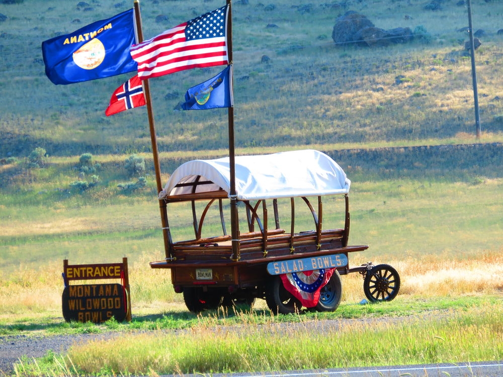 Nous sommes en pleine Montana, paysage aride, vallonné. Beaucoup de champs de blés. C’est quand même joli cette couleur jaune. On roule entre 100km/h et 120 km/h donc on avance assez vite. Selon le GPS on doit arriver vers 17h à l’entrée Nord du Yellow Stone.