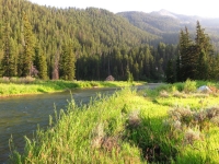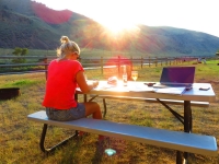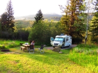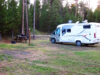 Je rentre le camping que j'avais trouvé dans le GPS il est à 2h de route, c'est parfait on va s'arrêter tôt aujourd'hui. Je conduis pendant une heure et quand Eric prend le relais je m'endors quasi de suite pour me réveiller à l'entrée du camping. C'est en fait un parc national. Un site jolie au bord d'un lac. Les emplacements sont très spacieux, prix $17 . Seul hic, il fait froid, nous sommes à 2200m d'altitude et ça se ressent. Pas la peine de sortir la table ce soir. On risque même d'allumer le chauffage.