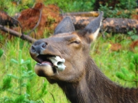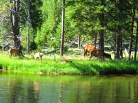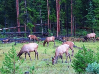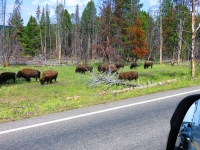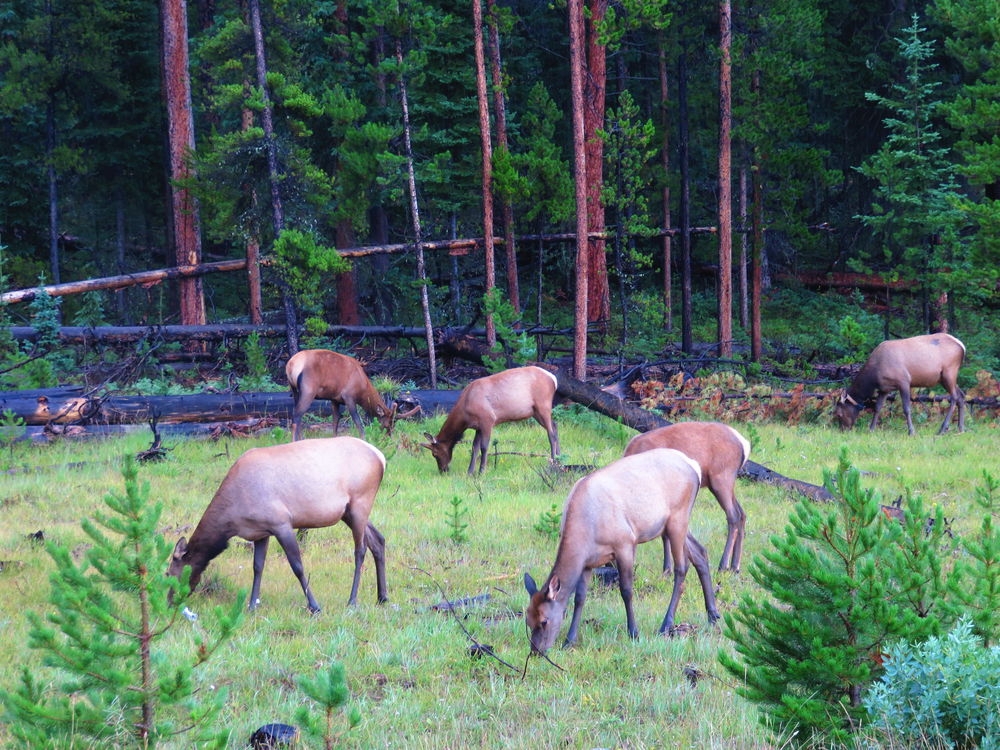 Juste avant de sortir du parc on voit un troupeau de wapiti au bord de la route, quelques photos s’imposent.