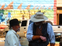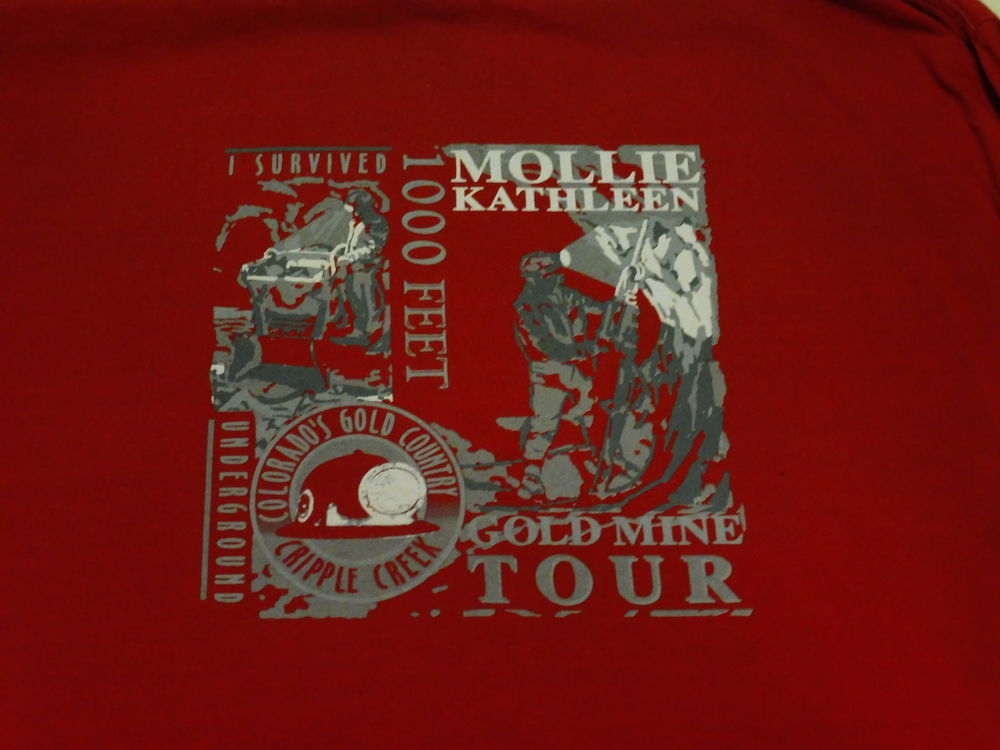 C’est vers 14h30 qu’on arrive enfin à Cripple Creek. Quelques kilomètres avant d’arriver il y a une mine à visiter. La visite est vivement conseillée par le guide de Routard, il mentionne également aux claustrophobes de s’y abstenir. En sachant qu’il est un peu claustrophobe j’en parle à Eric. Pas de problème ça va aller. En arrivant sur le parking il pleut des cordes, Eric sort chercher des billets pendant que je me prépare. Le prochain groupe part dans 5 minutes. Nous sommes prêts, on arrive juste à temps pour mettre nos casques. Une fille nous explique qu’on va descendre à 1000 ft (300m) en dessous de la terre avec un ascenseur. La descente durera 2 min. Justement l’ascenseur remonte avec une partie du groupe précédent. L’ascenseur fait 1/2m2 les gens y sont serrés comme des sardines, impressionnant. Je regarde Eric et je demande si ça va aller. Il dit oui mais son visage dit non. Quelques personnes de notre groupe commencent à monter dans l’ascenseur. Ils sont serrés l’un contre l’autre, pas 1cm d’espace. Je regarde Eric à nouveau, il est blanc. Cette fois-ci c’est clair on n’y va pas. On rend nos casques et je demande à la fille derrière la caisse un remboursement. Pas possible, une pancarte dit de bien réfléchir avant d’acheter des billets car pas de remboursement en cas de claustrophobie. Décidemment Eric n’est pas le premier ni le dernier. La seule option qu’on a c’est d’acheter quelque chose dans leur giftshop pour $40. Notre choix se porte sur des T-shirts (de la marque GILDAN comme tous les T-shirts que l’on voit ici )manches longues à $20. C’est seulement dans Fleurette que je vois ce qu’il y a écrit sur le dos. I survived 1000ft underground