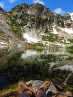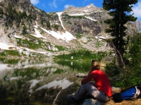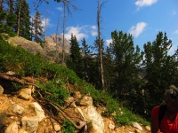 Il n’arrête pas de chanter cette chanson ridicule dans toute les langues. Je suis tellement concentrée sur mes pas que j’oublie l’ours (un peu). La montée est longue, en tout nous mettons 3h pour faire les 900m qui nous sépare du lac Amphithéâtre. Je suis fière d’y être arrivé dans un temps raisonnable. Même si je suis rouge comme une pivoine, à un point qu’une fille en montant m’a demandé si je me sentais bien