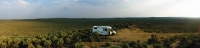 On refait le chemin inverse pour trouver un endroit pour la nuit, à l’aller on avait tous les deux repéré une bute qui nous plaisait. Et nous avions raison, on se gare en haut de cette bute avec une vue magnifique à 360 °sur les plaines. Elle n’est pas belle la vie ?