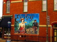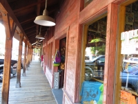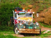 On s’arrête au bord d’une rivière pour manger et on poursuit la route. C’est mon tour de conduire et après quelques temps je sens que je suis moins alerte. Je regarde Eric qui lui aussi pique du nez, ce n’est pas prudent de continuer, on passe juste devant un village qui s’appelle Salida, un panneau indique downtown à 10 blocks. On y va jeter un œil. C’est une bonne décision, c’est très joli malgré la pluie. On y trouve pas mal d’antiquaires et des friperies. J’achète deux livres d’occasion dans un petit magasin avec plein de bricoles. On y passe un bon moment, ça nous a réveillé. On arrive juste à temps à Fleurette avant que l’orage éclate, il pleut tellement qu’on est obligé de s’arrêter un peu plus loin car on ne voit rien.