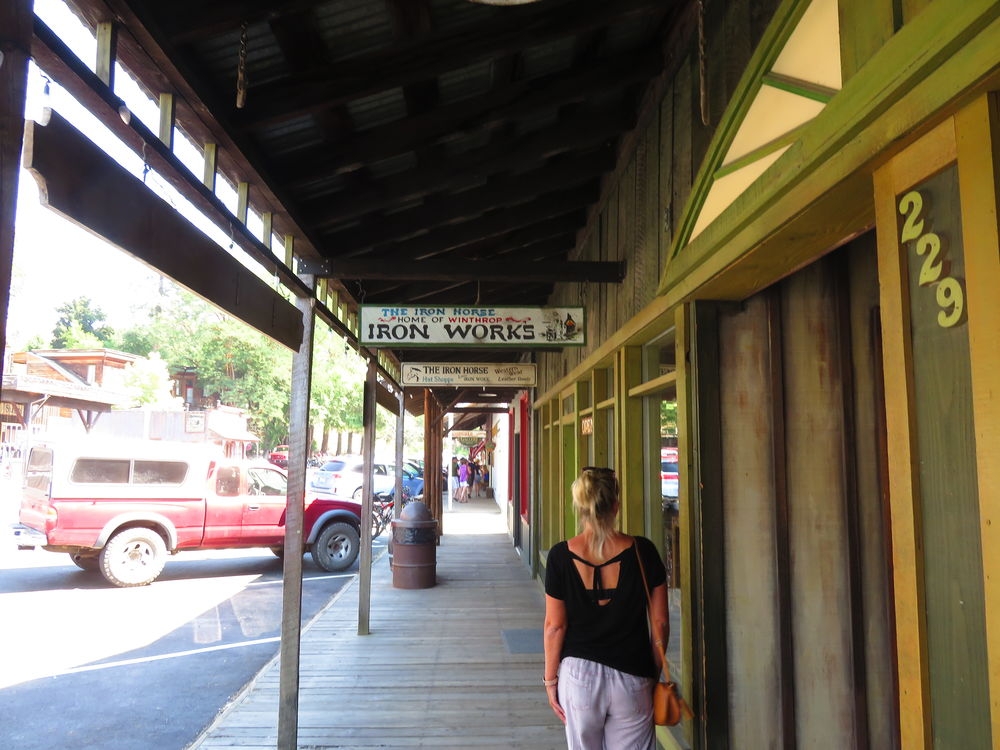Prochaine petite ville sur la carte c’est Winthrop, on n’a pas prévu de s’y arrêter. C’est impossible. Il faut se promener dans cette rue avec ses façades Western, il y a même un saloon.