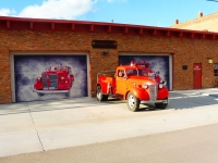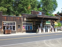 Finalement on a bien fait de suivre cette route. Le réservoir est à moitié vide et puisque nous n’avons pas vu de station d’essence depuis le début on décide de faire le plein dès que possible. Un peu plus loin on voit le panneau recherché et on tourne à gauche comme indiqué. La ville ne doit pas être bien grande car on ne voit rien. La pompe d’essence représente la ville en elle-même, elle sort directement d’un film. Eric est pratiquement de suite accosté par un Américain, des questions habituelles avec la différence qu’il nous demande l’adresse de notre site. On s’exporte aux USA