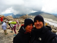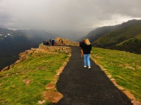 Il a commencé à pleuvoir et la vue n’est pas grandiose, à certains endroits on ne voit rien à cause de la brume. La pluie se transforme en neige au fur et à mesure qu’on monte.