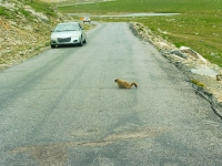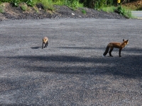 A un moment donné un vois deux renards sur le bord de la route. Ils ont sans doute habitude qu’on les nourrit car ils viennent vers les voitures. Je résiste à la tentation même s’ils ont l’air amaigris.