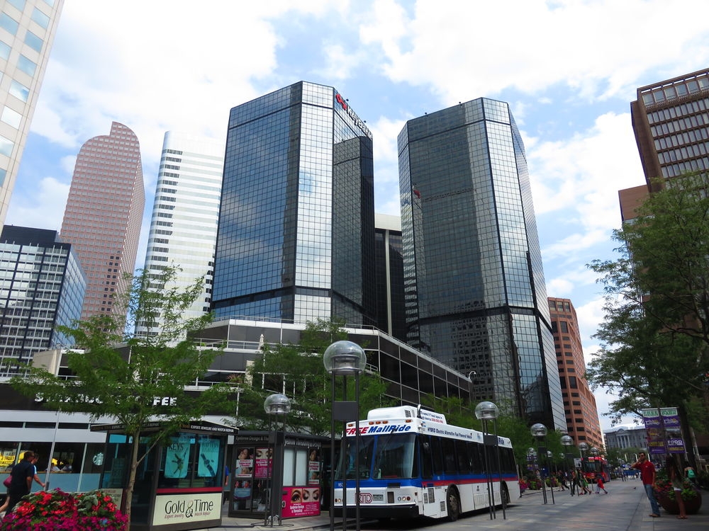 Une fois en bas on met le cap sur Denver. On se gare sur le parking de la Pepsi Compagnie pour $7 , de là il nous reste 800m à pied pour joindre le centre-ville. Il fait beau, même chaud.
