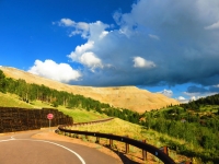 L’idée c’est d’arriver aujourd’hui à Alamosa, c’est une ville pas loin du Great Sand Dunes Park qu’on aimerait visiter. On passe par une route scénique, finalement on ne regrette pas l’autre route car celle-ci est très belle. Nous sommes d’accord sur le fait que les paysages aux États-Unis sont plus beaux que ceux au Canada, même si là-bas on a également vu des très belles choses. Ici c’est plus ouvert et plus vaste.