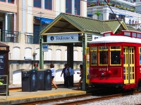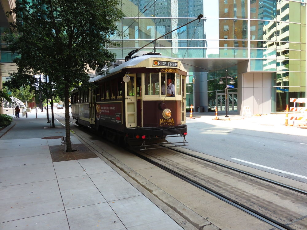 On abandonne Fleurette sur le parking pour la journée. Le tram semble directement sorti d’un livre d’histoire et est tenu par deux personnes. Un chauffeur et quelqu’un qui sort avec un panneau STOP pendant que les passagers rentrent et sortent. 15 min plus tard nous sommes dans Down Town.