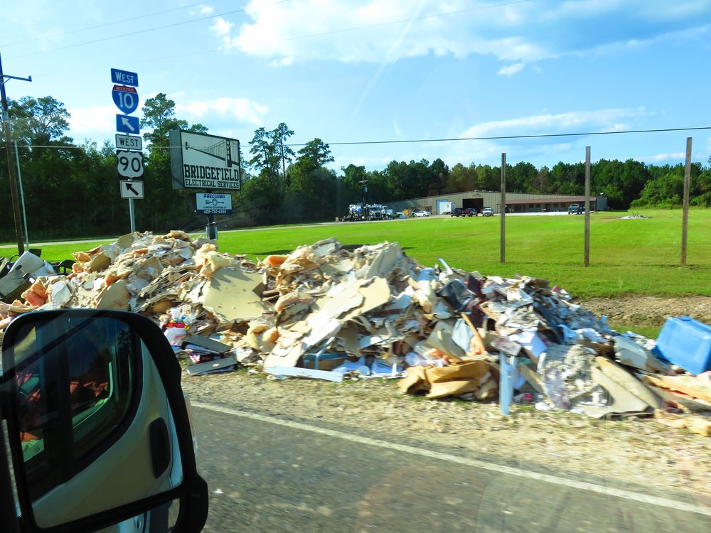 Fur et à mesure qu’on avance on voit de plus en plus de dégâts causés par Harvey. C’est très aléatoire, on peut voir une maison quasi détruite tandis que celle à coté n’a rien eu. En tout cas il nous semble. Difficile à dire après plus de 3 semaines, depuis ils ont certainement beaucoup nettoyé. Pas de routes fermées on voit que certaines routes ont été inondées mais elles sont de nouveau praticables aujourd’hui.