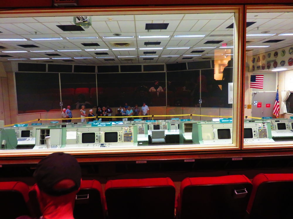 On se dirige vers le Tram tour. C’est un tour à l’extérieur qui dure 1h30. Content de retrouver un peu de chaleur nous posons sagement devant la photo obligatoire avant de nous asseoir dans le tram. A partir d’ici les choses deviennent plus intéressantes. On se promène dans le quartier et on se rend compte que la NASA est un village dans une ville. On nous montre le Centre de contrôle, le vrai du vrai. C’est de cette pièce que les lancés ont été dirigées, entre autre celui d’Apollo 13.