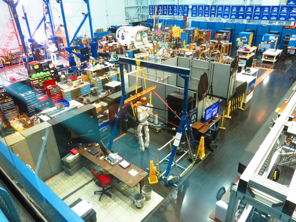 Ensuite on nous montre une grande salle avec des anciens simulateurs ainsi des plus récents encore utilisé aujourd’hui. On voit également des robots encore en développement.