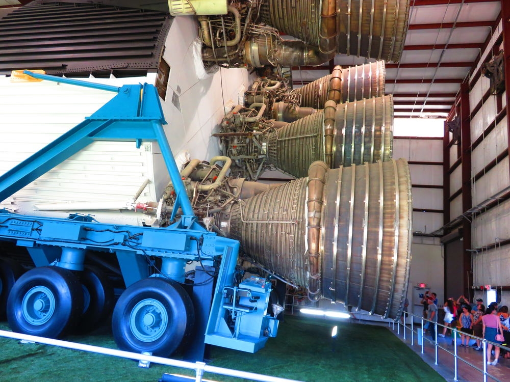 Prochain stop, une énorme fusée couchée (Saturne V), 110 m le long et 10 m de diamètre la grandeur des réacteurs est inimaginable. Ok je suis une femme mais c’est quand même assez impressionnant. En même temps pas besoin d’y passer une heure, si je laisse Eric faire il reste planté là…. Un petit tour bien sympathique qui nous a donné faim.