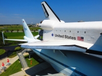 Un peu plus motivé que tout à l’heure on se rend à l’extérieur du bâtiment pour visiter le Boeing 747 qui a servi à transporter la navette spatiale. Les deux se visite de l’intérieur.