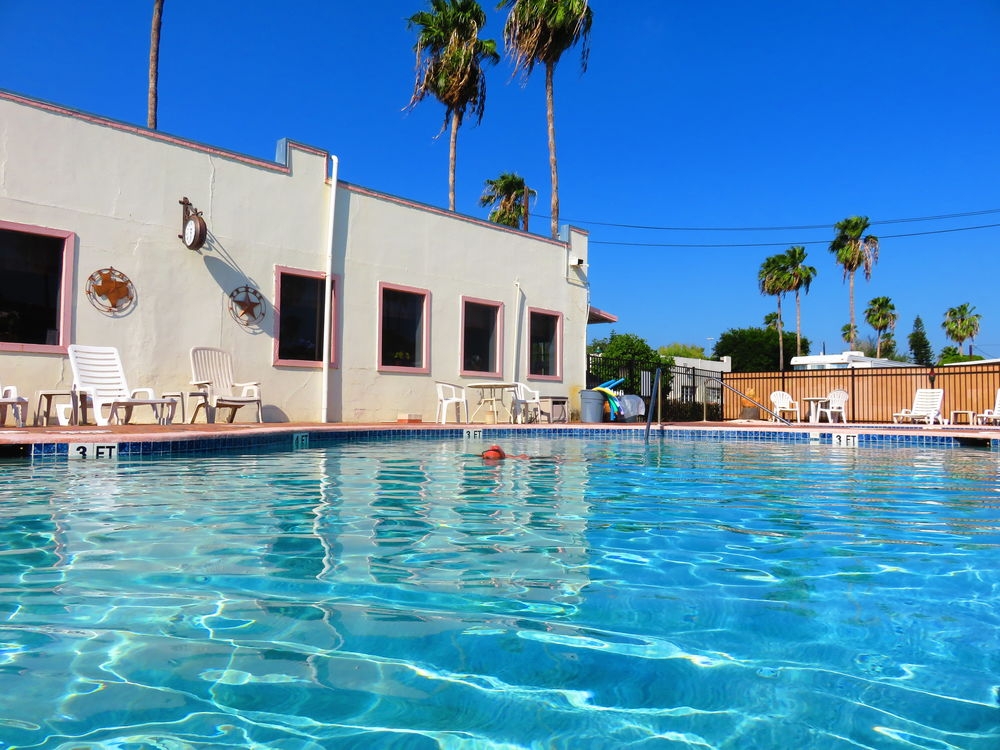 Hier soir Eric a décidé de passer la frontière à un autre endroit pour éviter Matamoros. Ce n’est pas loin mais la réputation est meilleure. Il nous trouve également un camping à $18 avec piscine ! Il peut chercher plus souvent